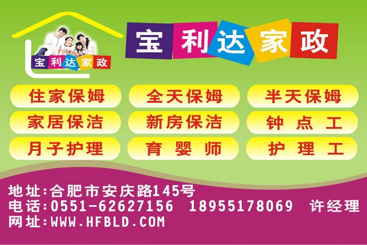 宝利达家政服务中心专注服务合肥市家政市场,成立27年累计为6万余户家庭提供了优质的家政服务。公司秉承“用户至上,诚信服务”的经营理念,为广大市民提供全天保姆、半天保姆、住家保姆、月嫂、保洁、钟点工、护工等多个服务项目,深受用户好评,享有较高的知名度和美誉!